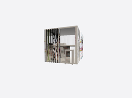 Als op een van de elementen geklickt wordt, wortd het plaatje grooter so dat het de heele pagina in neemt. Maar ook zonder klicken draaien de elementen en door het gebruiken van perspektiev zijn de dingen in de voorgrond stets groter dan die in de achtergrond.